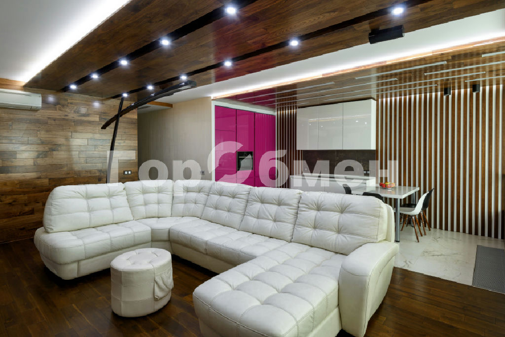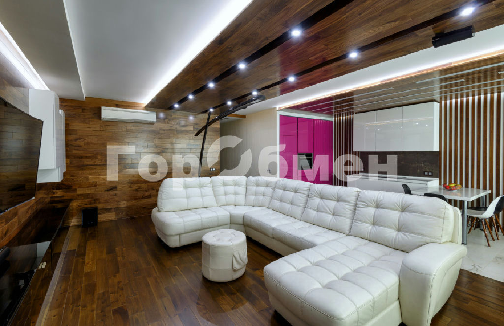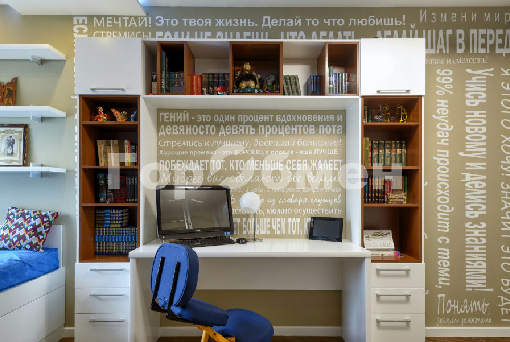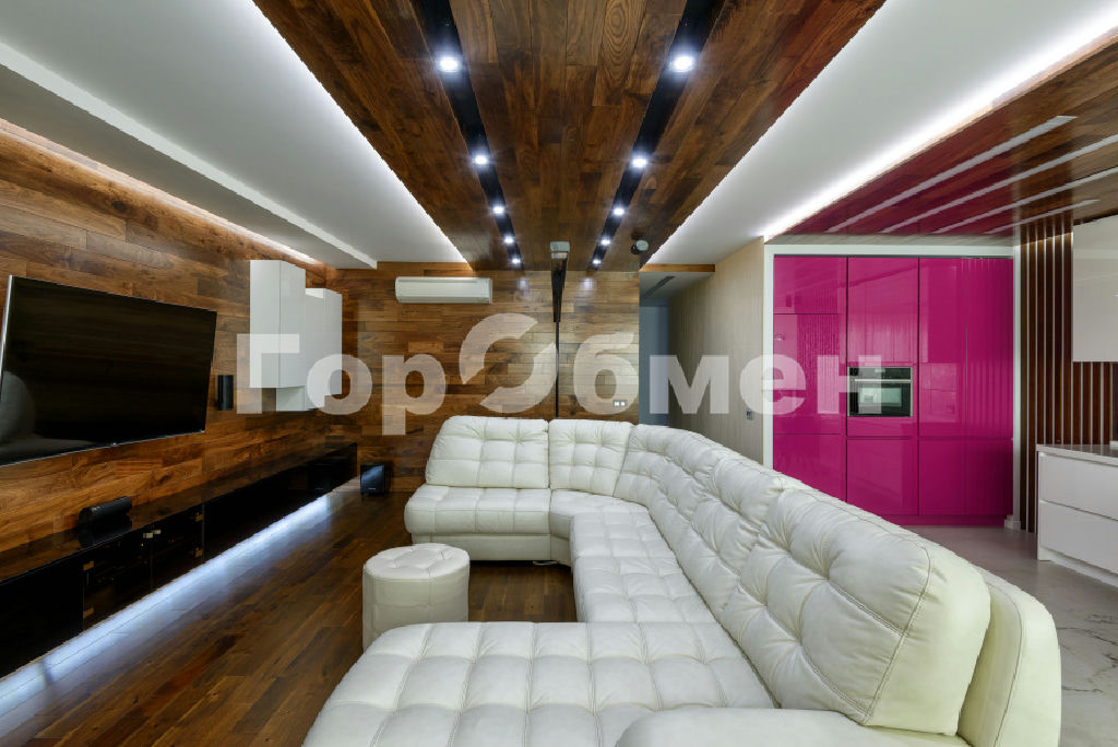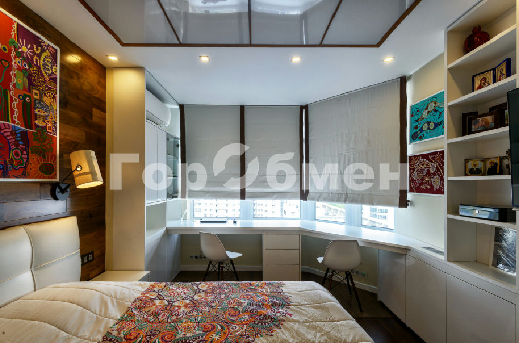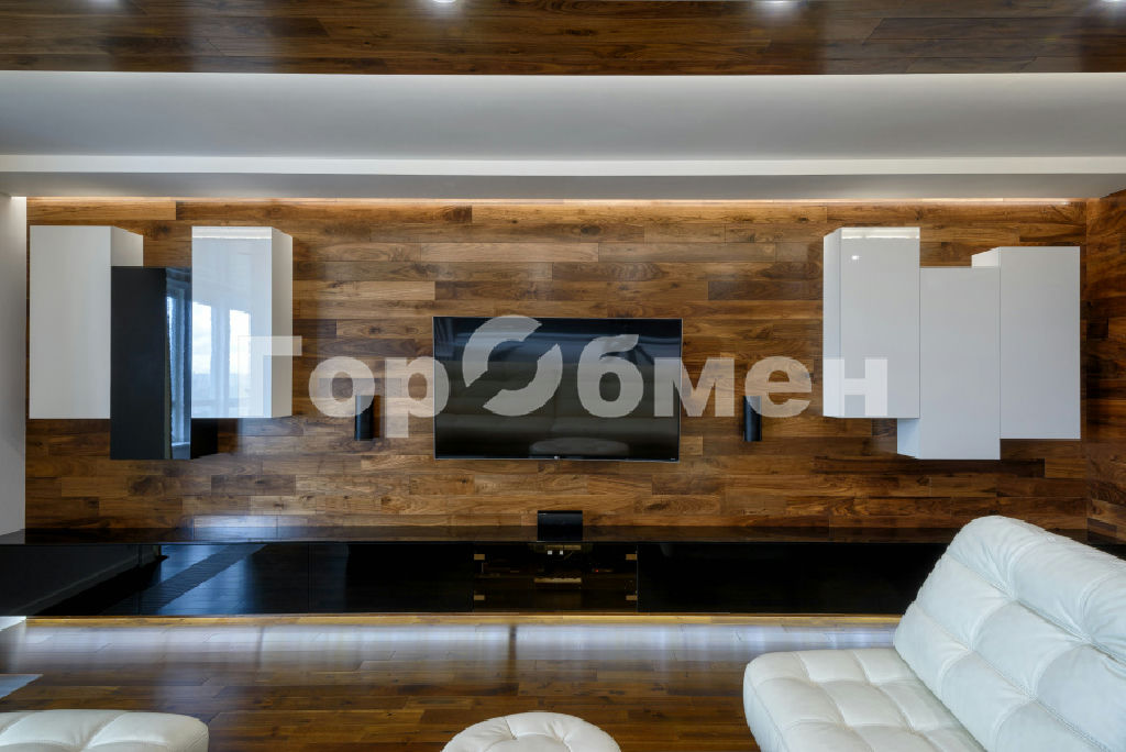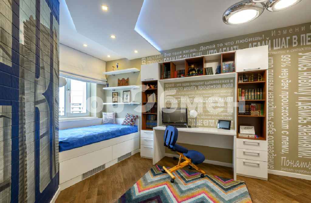 Просторная кухня-гостиная (50 кв.м.) с панорамным остеклением, три спальни: мастер-спальня с санузлом, душем и рабочей зоной, две детские комнаты, детский и гостевой сан-узел, гардероб-постирочная. Все спальни оборудованы просторными шкафами и продуманной встроенной мебелью. Оружейный сейф. Полноценный спортивный уголок в детской комнате.